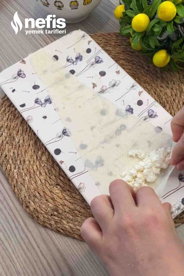 3. Her kesimin ortasına peynir ekleyip, rulo biçiminde sarıyoruz.