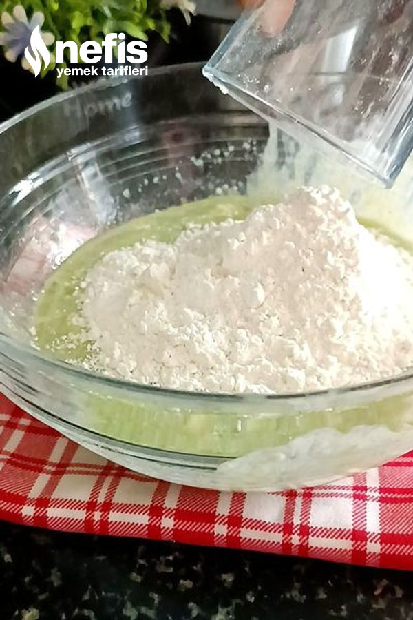 - Ardından un ve kabartma tozunu ek edip yoğuralım.