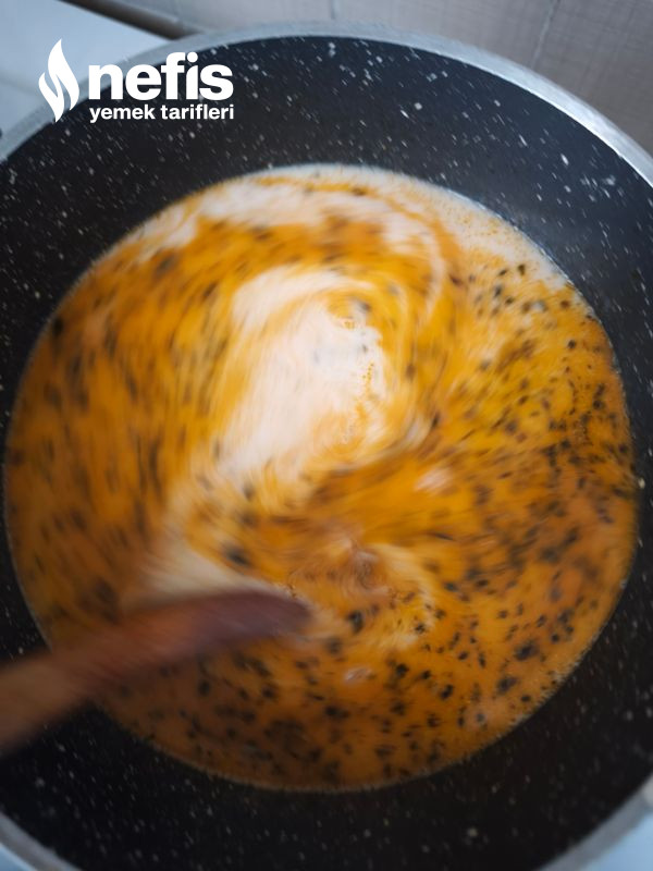 - Daha sonra terbiyeyi yavaş yavaş tencereye karıştırır halde ekleyelim.