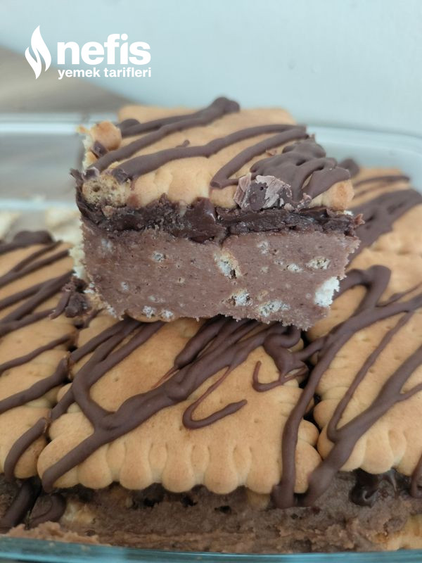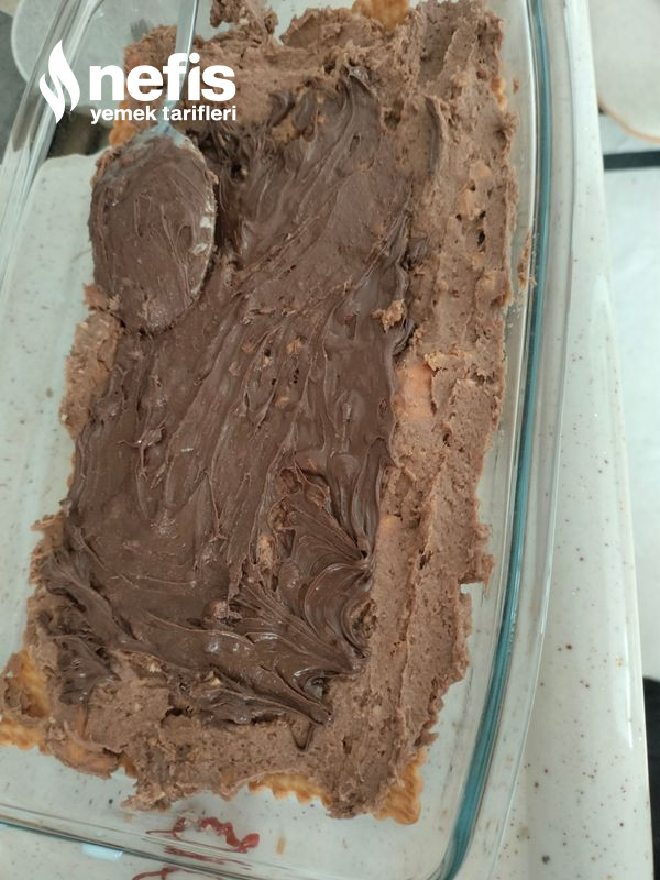 - Benmaride erittiginiz çikolatayı bisküvilerin üzerinde gezdirin.