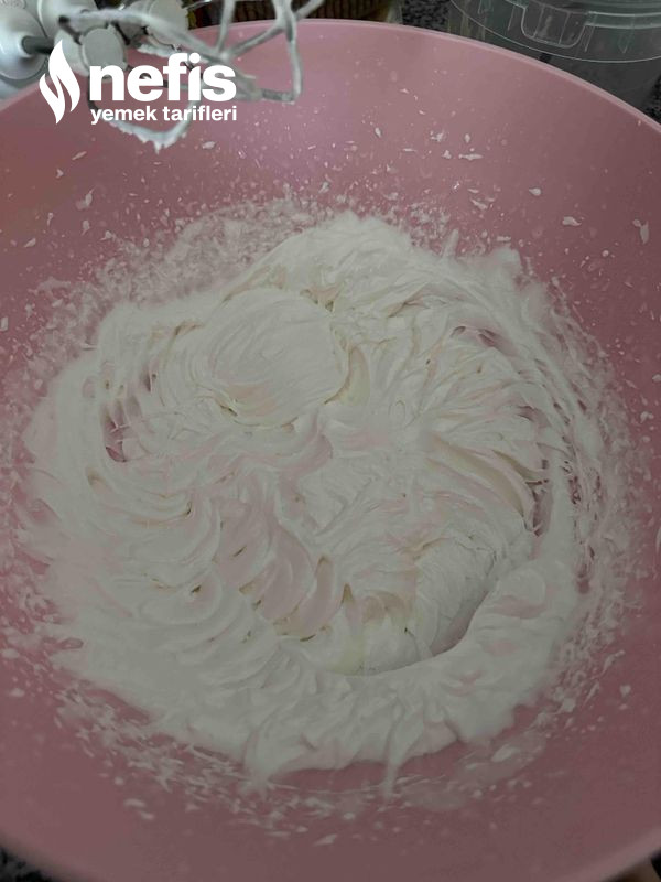 - Öncelikle krem şantiyle sütü çırpıyoruz kıvam alana denk.