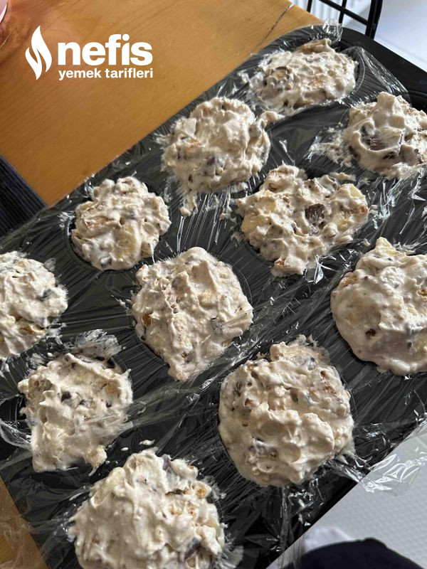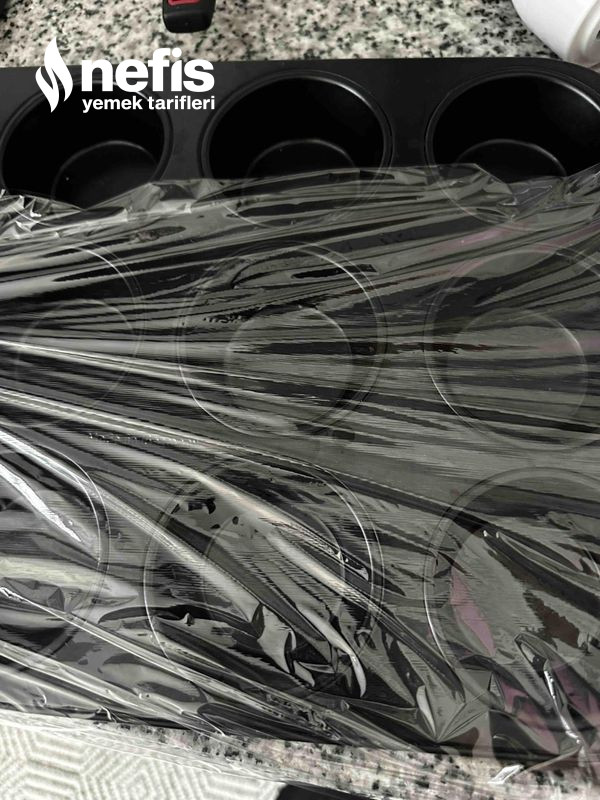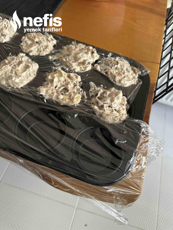 - Herhangi bir kek kalıbına streç sinema seriyoruz ve üzerine karışımı koyuyoruz tekrar streç sinemayla kapatıp buzluğa atıyoruz.