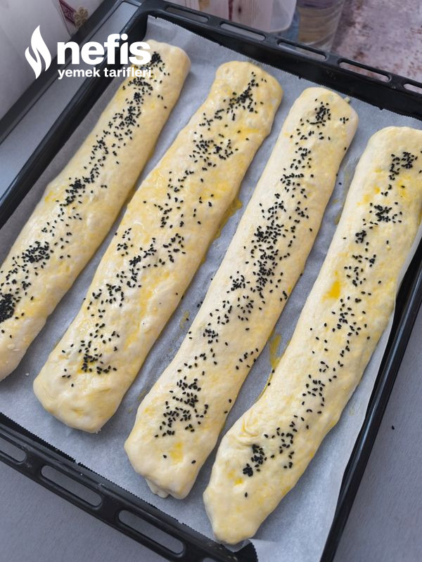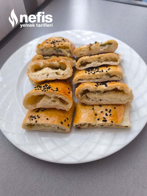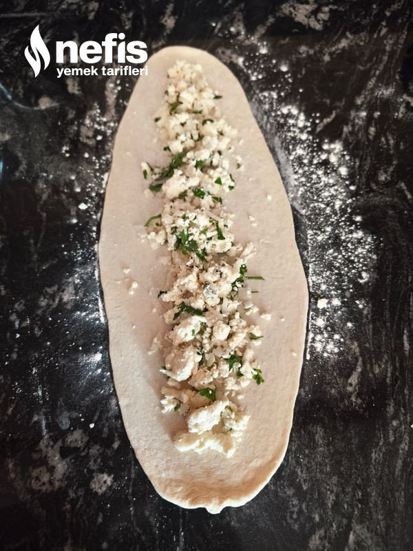 - Orta kısmına peynirli harcımızı ekleyip kapatalım ,ters çevirip fırın tepsimize alalım .