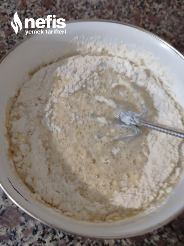 - Süt, tuz ,un ve yumurtayı karıştırma kabına alıp blender ile pürüzsüz olana kadar çırpıyoruz.
