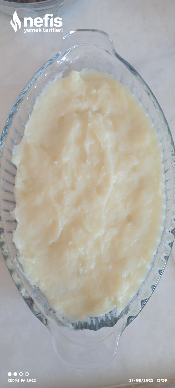 - Sonra kekin üstüne muhallebiyi dökelim.