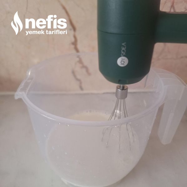 1. Sütü ve şekeri bir mikser yardımıyla çırpıyoruz,köpük köpük olana kadar devam edeceğiz.