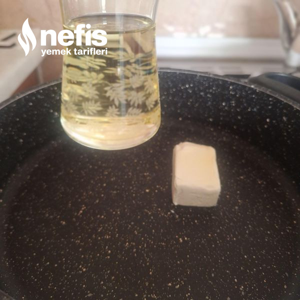 2. Margarin ve sıvı yağı uygun bir tencereye koyuyoruz, margarin eriyene kadar yağı kızdırıyoruz.