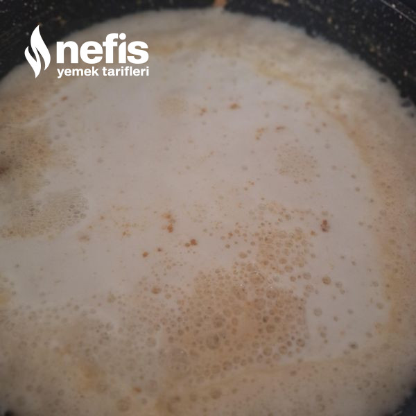 4. Rengi dönünce köpük köpük olan süt karışımımızı ekliyoruz.
