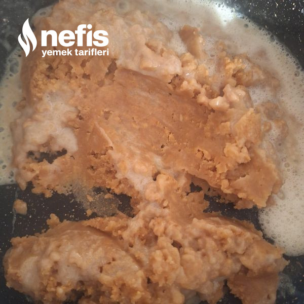 5. Sonrasında karıştırmaya devam ediyoruz ,topak topak olacaktır korkmayın karıştırdıkça kıvam alacak.