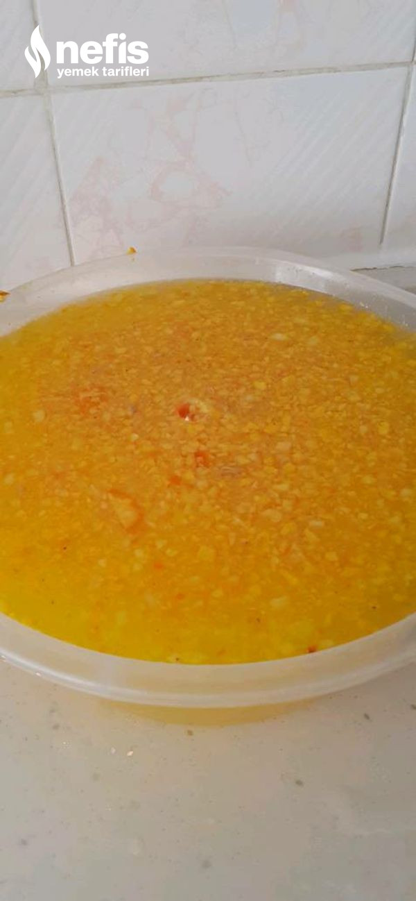 3. Biraz çekip leğenin içine döküp geri kalan gereçleri koyuyoruz karıştırıyoruz.