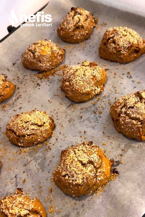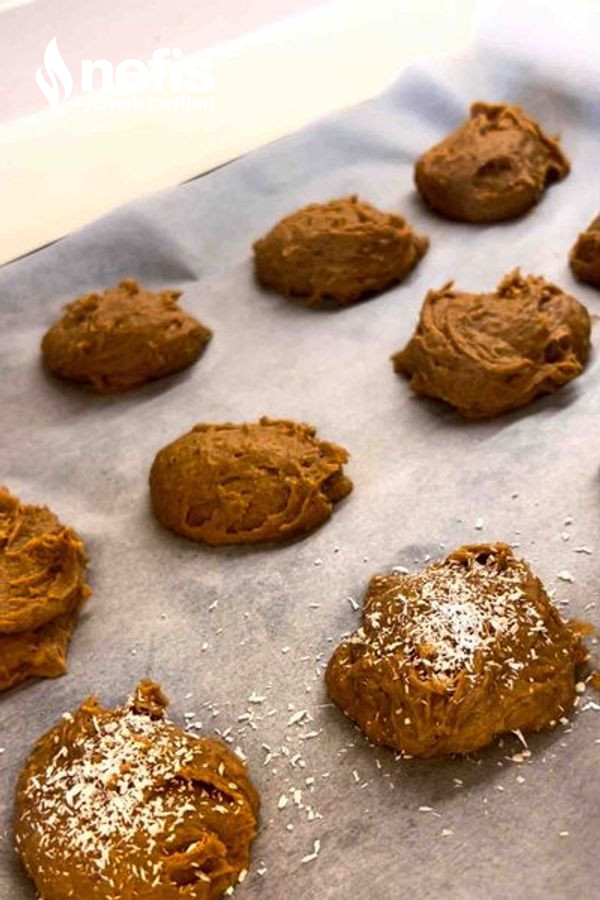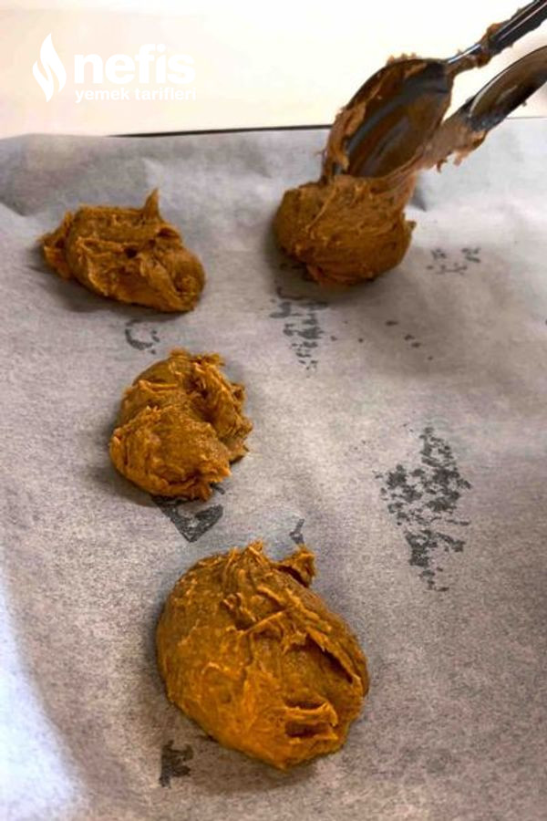 - Pişirme kağıdına kaşık yardımı ile ölçüsüz halde dizin.
