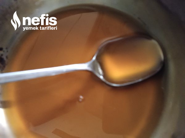 11. Bir çay bardağında da nişastayı eritelim, biraz kıvam alan karamelimize ekleyelim, 1 dk kadar karıştıralım, soğumaya bırakın.