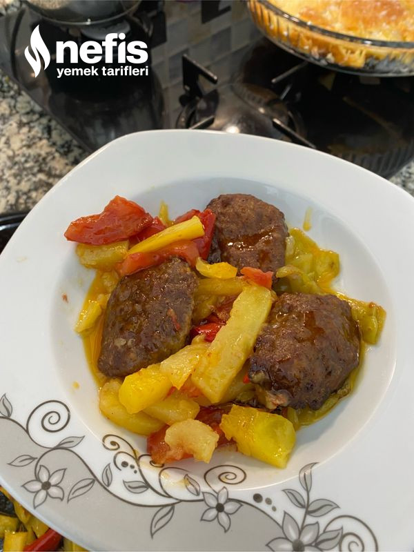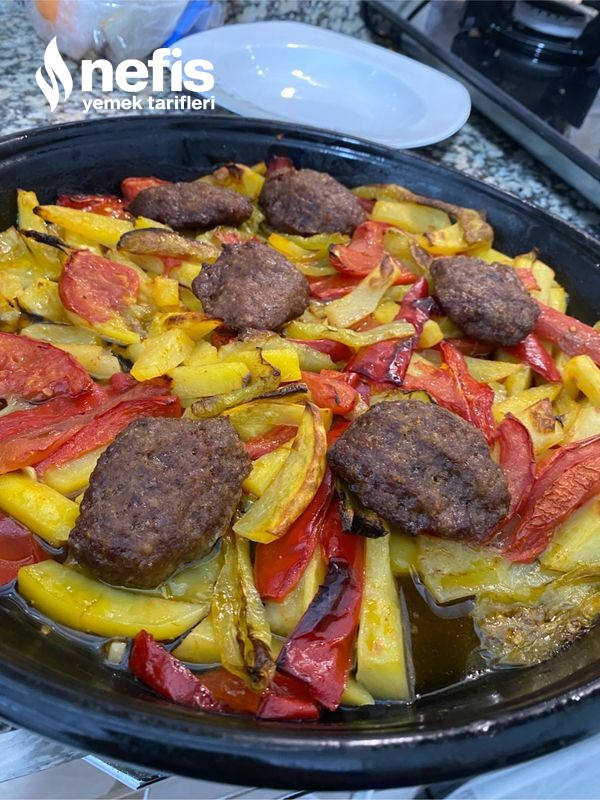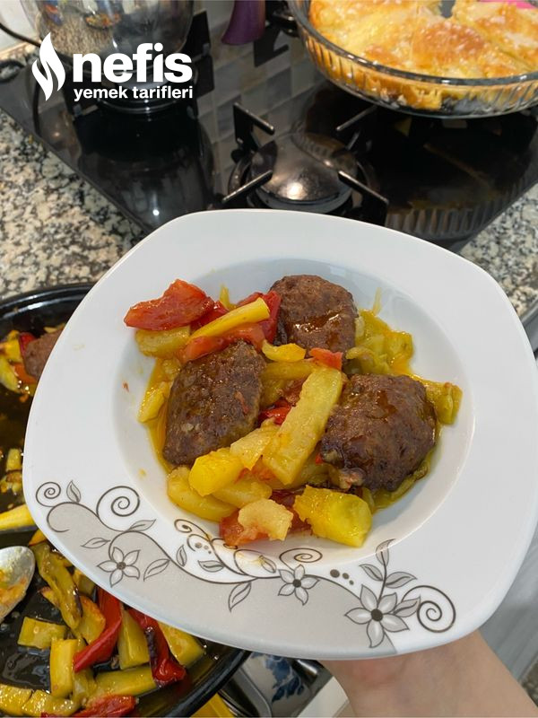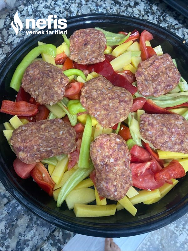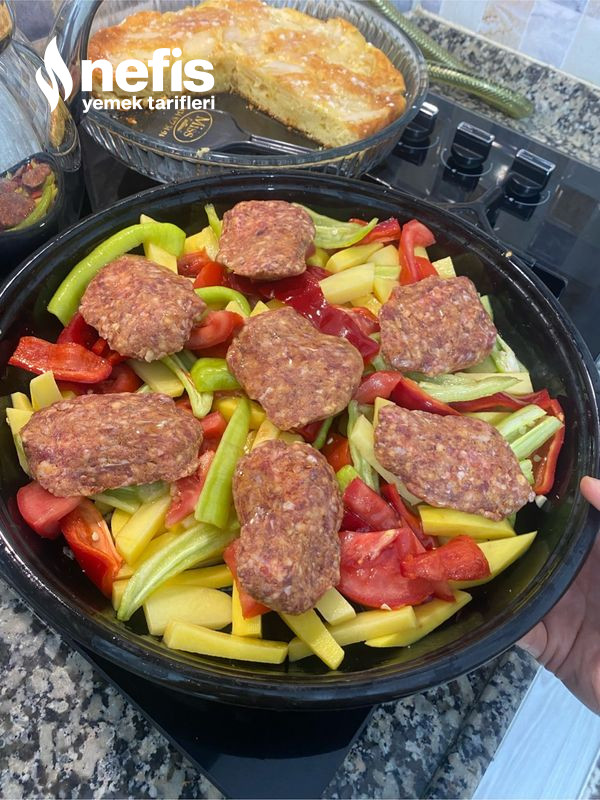 - Sebzelerin üzerine köfteleri diziyoruz kendi yapığınız köftelerde olur ben pratik olsun diye hazır köfte kullandım.