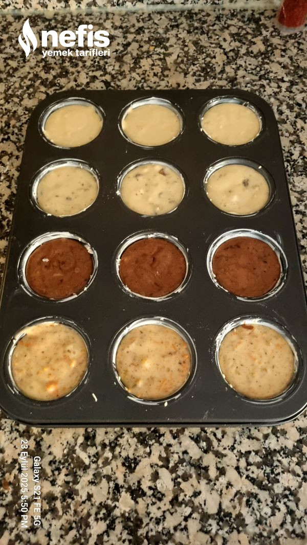 - Daha sonra kağıt koyduğumuz muffin kalıplarına hepsini bölüştürüyoruz bu hamurdan yaklaşık 18 tane bu muffine elde ettim.