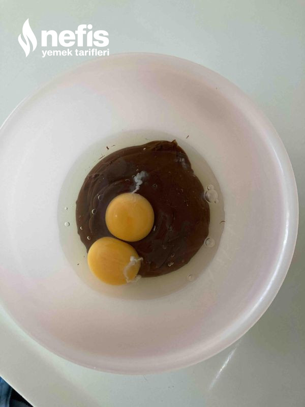 - Fındık kreması ile yumurtayı uygun bir kapta çırpıcı ile karıştırın.