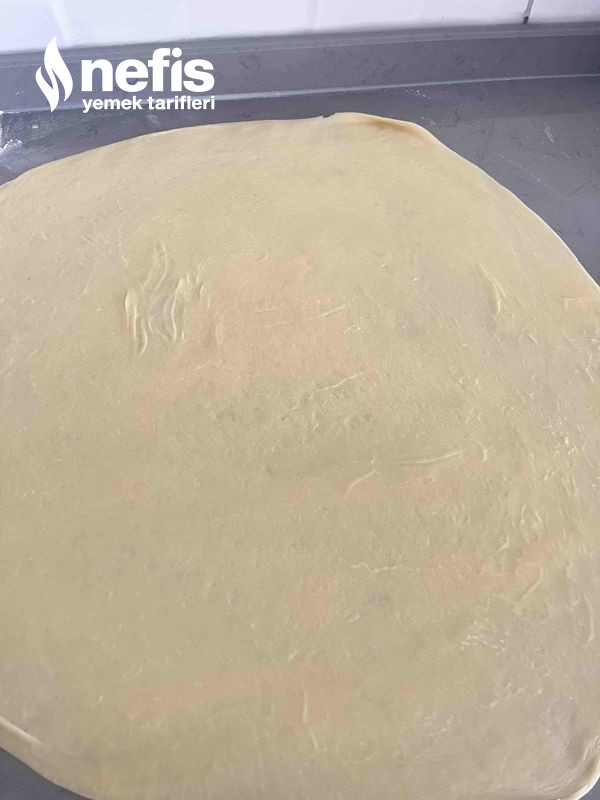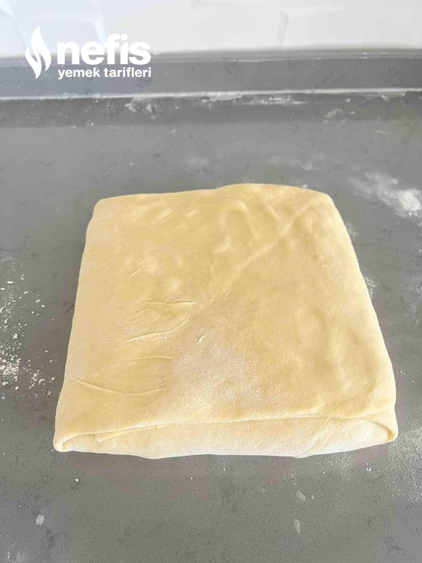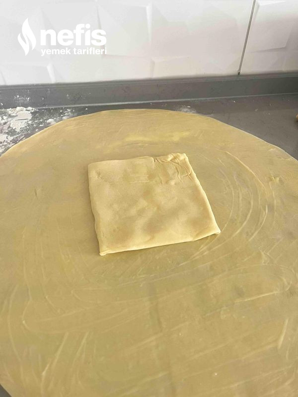 - Hamurlarımızı açalım, açtığımız hamuru margarinle yağlayalım ve kitap formunda katlayıp kenara alalım. İkinci hamurumuzu açalım ve margarinle yağlayalım, üzerine katladığımız birinci hamurumuzu koyalım ikinci hamurumuz içinde kalacak üzerine katlayalım.