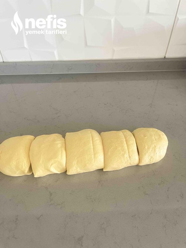 - Dinlenen hamurumuzu unlanmış tezgâhın üzerine alalım hamuru beş eşit kesime bölelim. Margarini eritelim.
