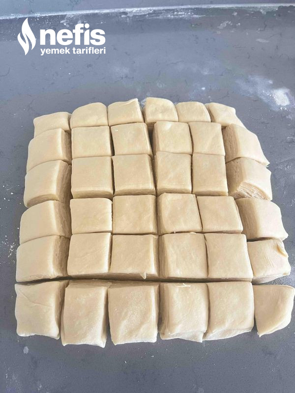 - Kare halinde olan hamuru 6 ya evvel dikine sonra yatay olarak keselim 36 adet elde etmiş olacağız.