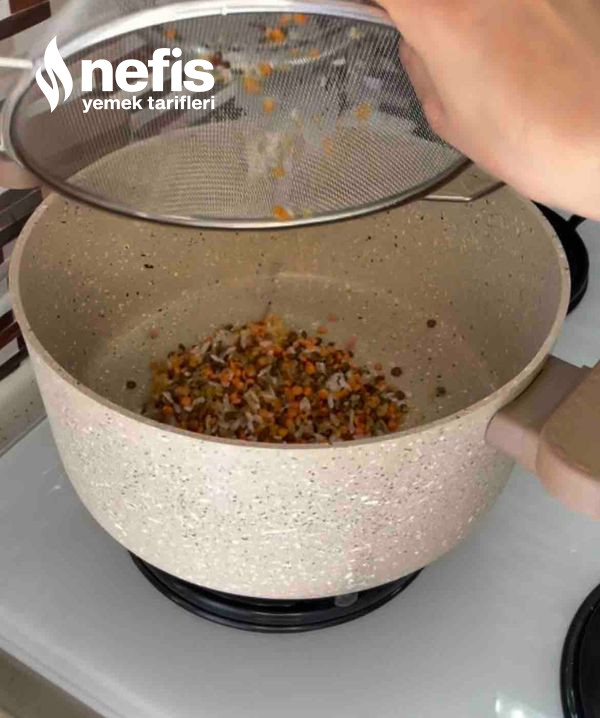 1. Mercimekleri, pirinç ve bulguru güzelce yıkadıktan sonra tencereye alarak üzerine suyu ek edin ve sıcak suda yumuşayana kadar pişirin.