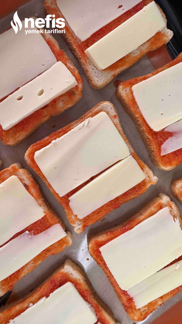 - Ekmeklerin üzerine sos sürüp kaşar peyniri dilimlerini yerleştirelim.