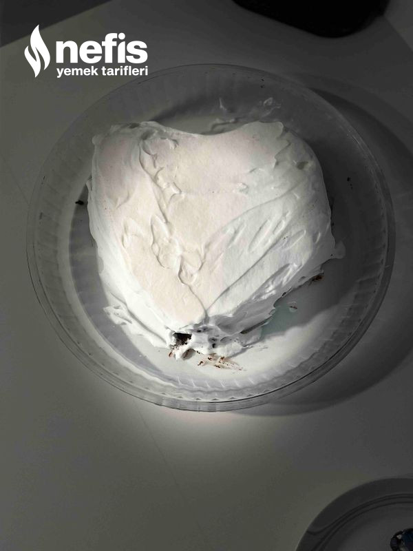 - Ayrı bir kapta 1 su bardağı süt ile 1 paket krem şantiyi çırpıp dolaba kaldırıyoruz.