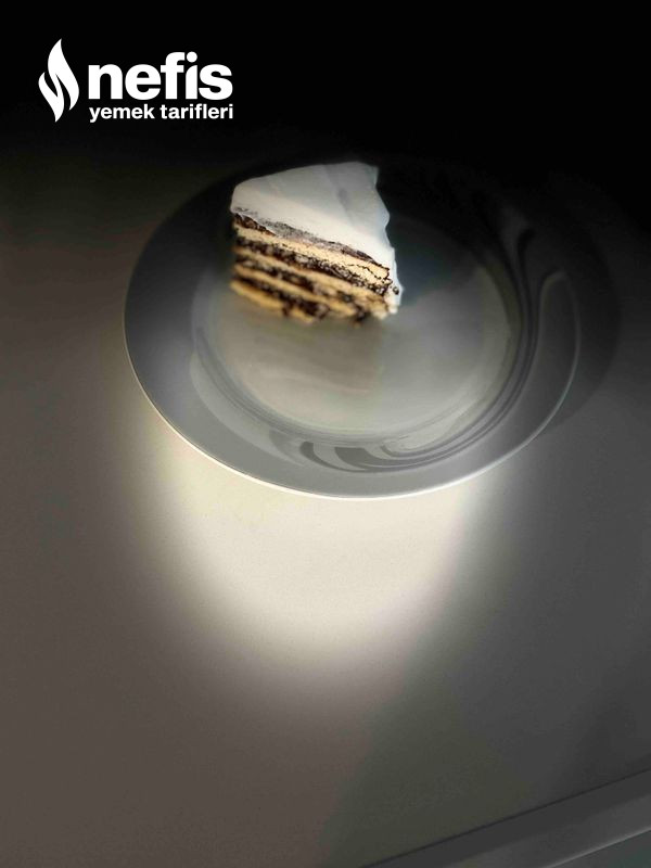 - Son olarak üzerini petibör bisküviyle kapatıp krem şantiyle sıvıyoruz.