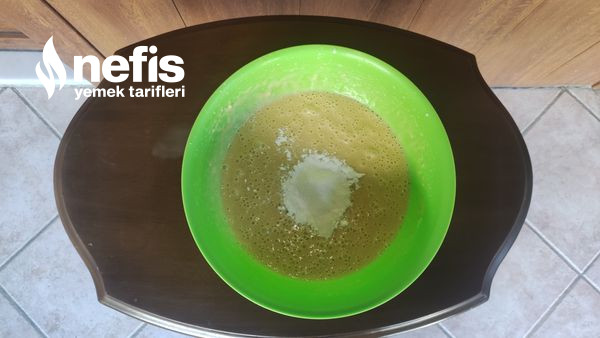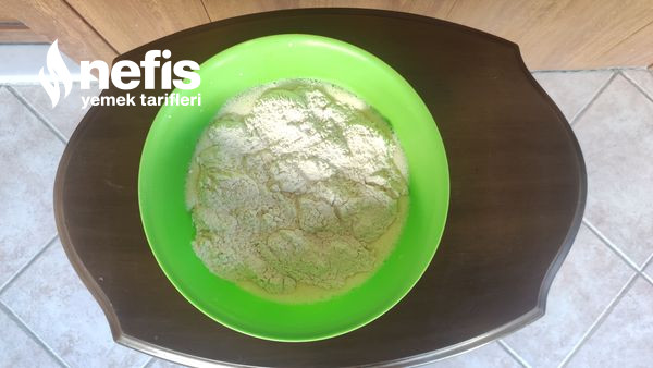 5. Unu güzelce eleyip ekliyoruz ve topak topak olmadan karıştırıyoruz.