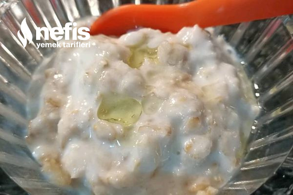 3. Ocaktan alıp ılımaya başlayan yulafın üzerine yoğurt ve zeytinyağı ekleyip bebişlerinize yedirebilirsiniz.