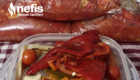 - Şimdi üzeri için şalçayı kavuralım biraz suyla sulandırıp, yemeğin üstüne dökelim. Görsel olsun diye yahut severseniz biber ve domatesle süsleye bilirsiniz.