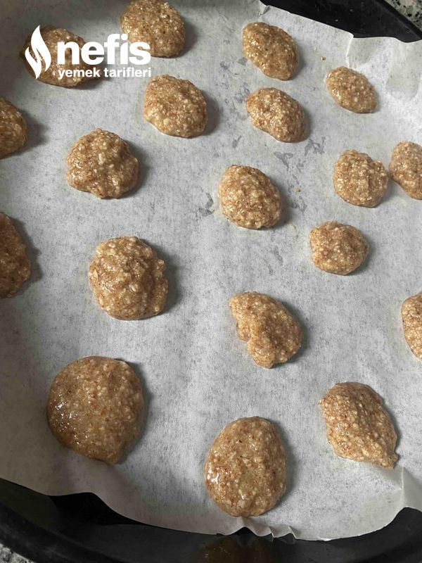 - Hamuru isterseniz sıkma torbasıyla tepsiye ceviz büyüklüğünde sıkabilirsiniz ben kaşık yardımıyla koydum tabi kaşığı her hamurdan almak istediğimde ıslattım.