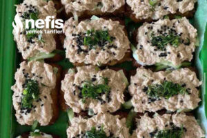 - Kızaran pirinçin üstüne labnemizi sürelim, üstüne salatalık onunda üstüne ton balıklı karışımı koyup dilediğimiz üzere süsleyebiliriz.