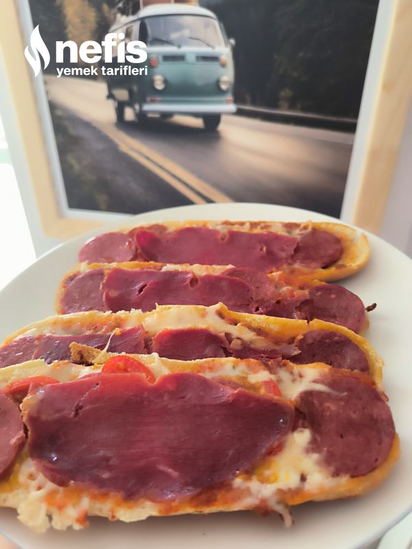 - Açıp pastırma dilimini de koyalım 1,5 dakika kadar tutalım.