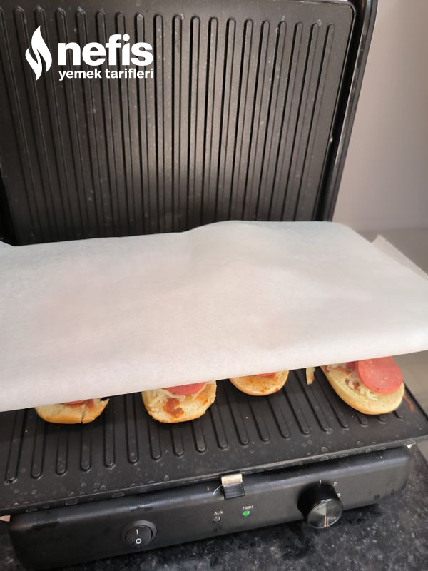 - Üzerine yağlı kağıt koyalım 3-4 dakika peynir eriyene kadar pişirelim.