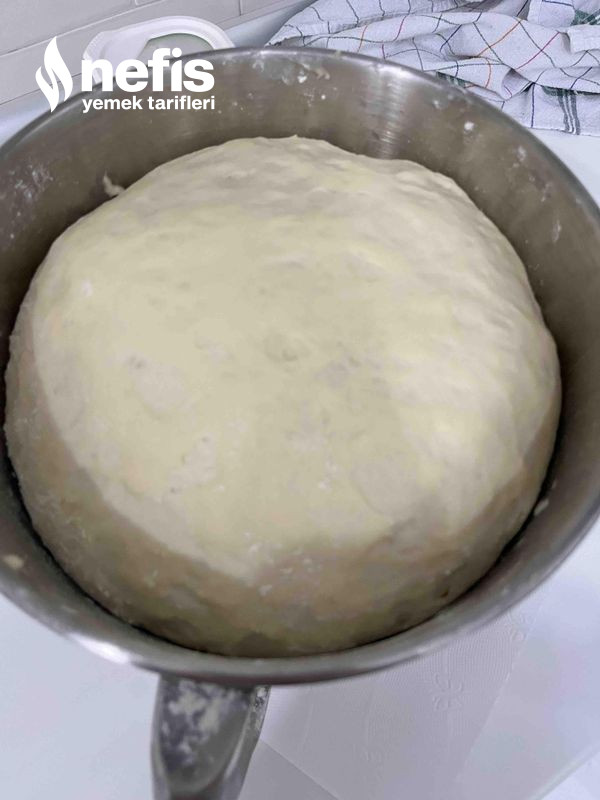 2. Unu denetimli bir biçimde ekleyelim ele az yapışan bir hamur elde edelim, üzerini bi bezle örtelim ve bir saat bekletelim.