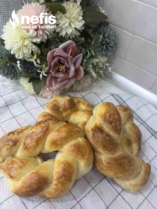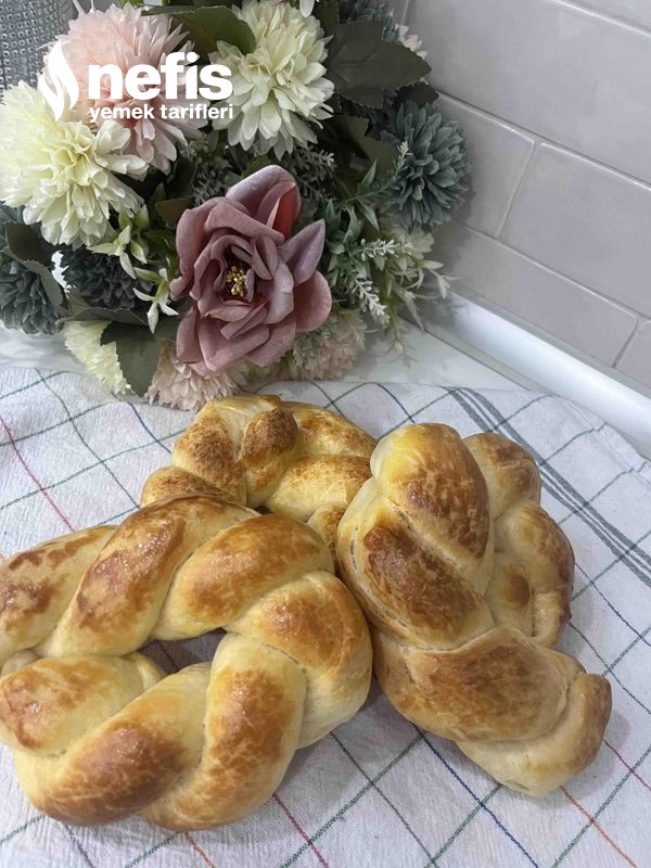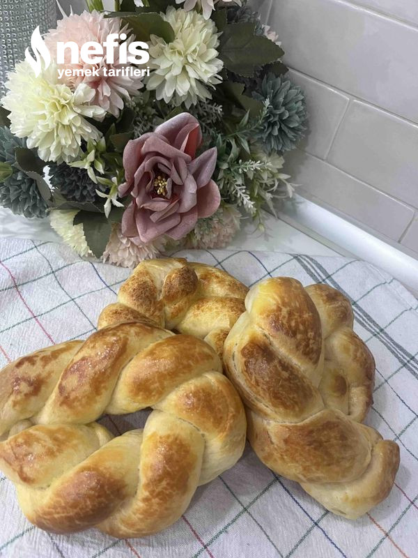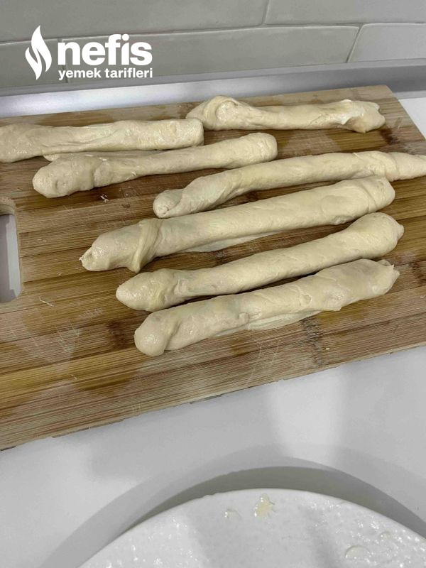 5. Şerit halinde olan hamurlarımızı iki iki alıp belik formunda örelim ve baş kısımları birleştirelim.