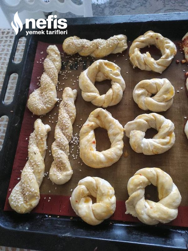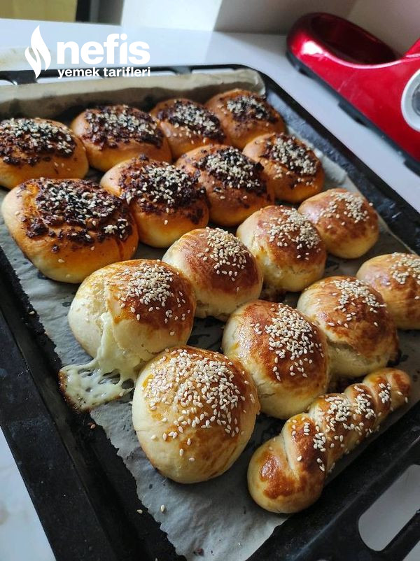 - Hamuru yarım saat mayalayıp isteğiniz biçimde hamurdan mandalina büyüklüğünde modüller koparıp yuvarlayın ortasına peynirli harçtan koyup ister yuvarlak ister daha değişik formlar verelim yada açmalar yapalım.