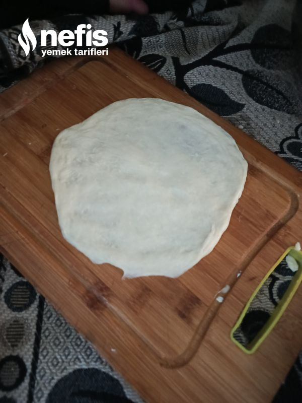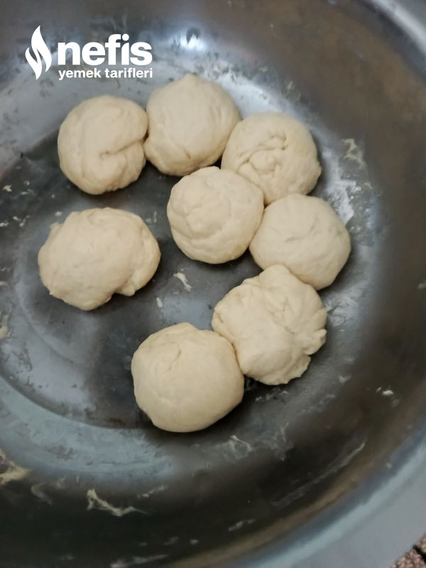 - Hazırlanan hamurdan yumurta büyüklüğünde toplar hazırlayalım, hafif un serptiğimiz açma tahtasında elimizle açalım.