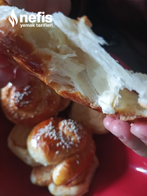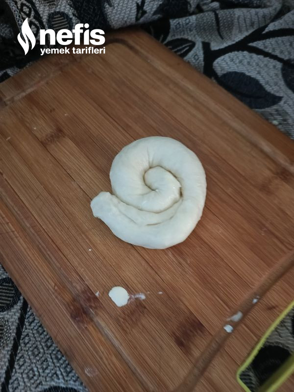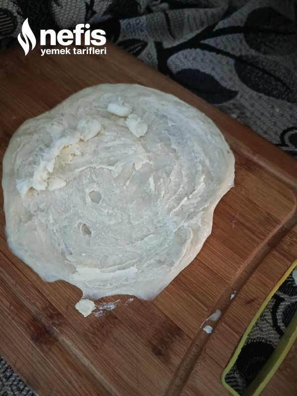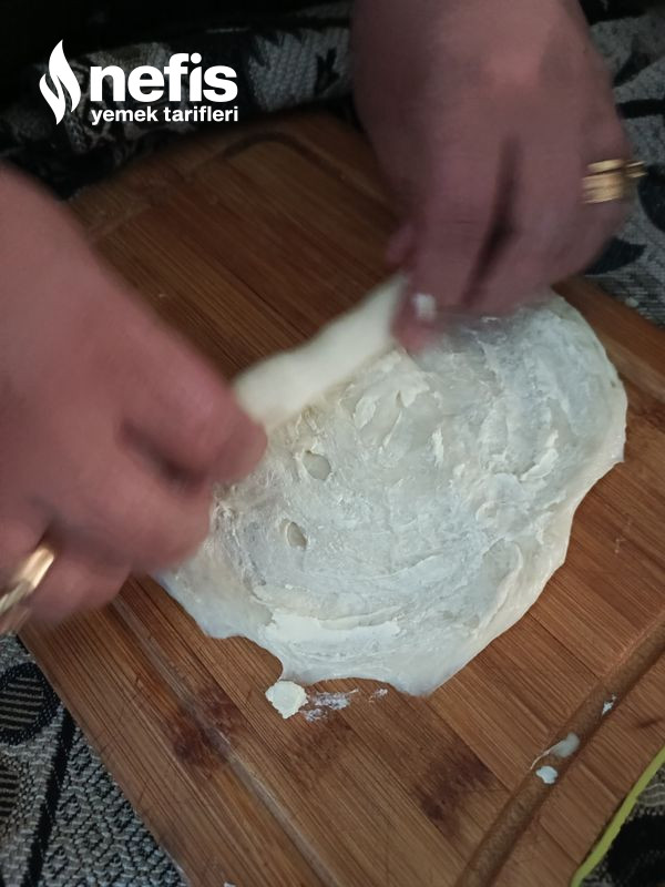 - Açtığımız hamurun üzerine oda ısısında beklettiğimiz tereyağ sürelim, akabinde isteğe bağlı iç gereci ekleyip ince ince saralım.