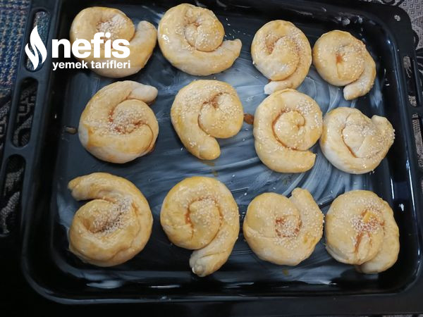 - Yağlanmış fırın tepsisine hazırladığımız poğaça biçimlerinin üzerine yumurta sarısı sürelim ,susam ekleyin.