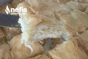 6. Daha sonra kalan kalan olağan yufkanın bir adedini tekrar tıpkı formda sosa batırıp tepsiye dizelim.