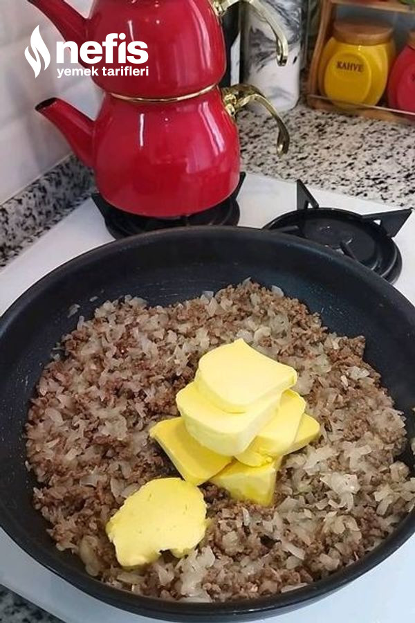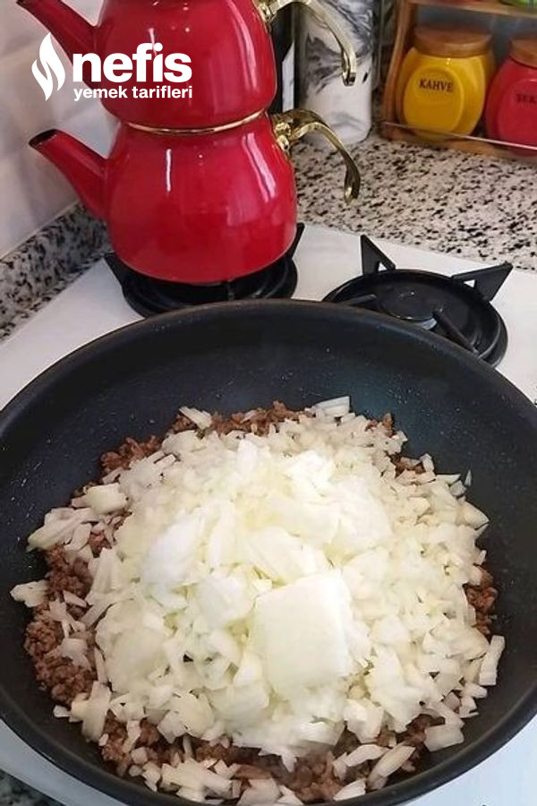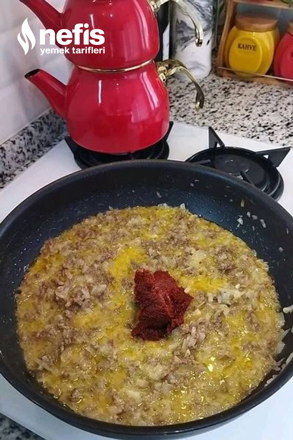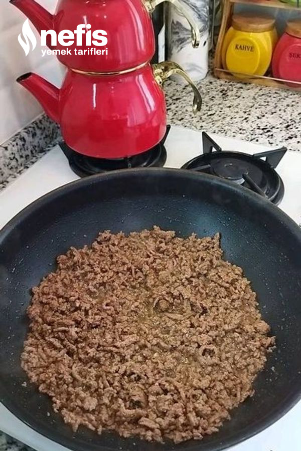 1. Önce iç harcı hazırlayın. Kıymayı tavaya alıp suyunu salıp çekene kadar kavurun.