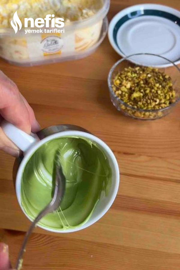 4. Antep fıstık ve ve sosu ile süsleyip servis et.