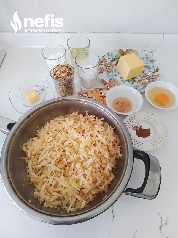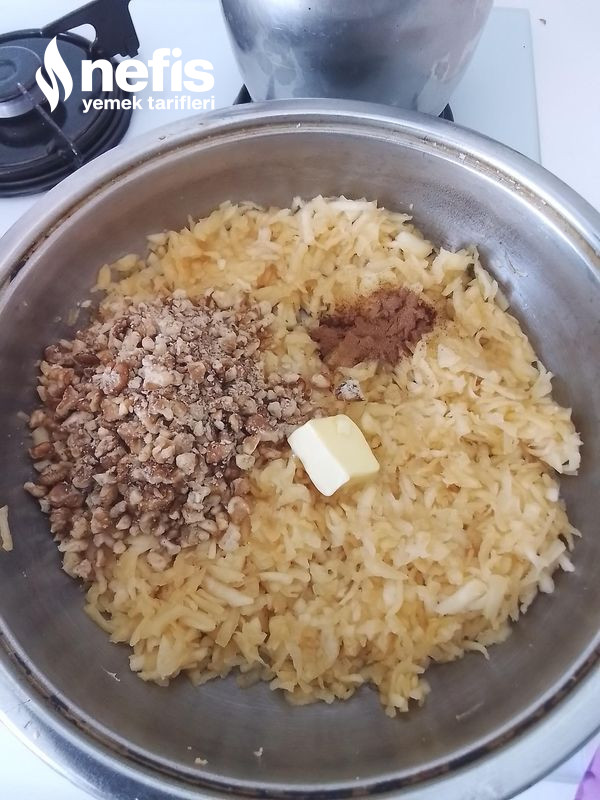 - Elmaları soyup rendeleyin. Ocakta suyunu biraz çekince ceviz tereyağı ve tarçını ekleyip karıştırın.Altını kapatıp soğumaya bırakın.