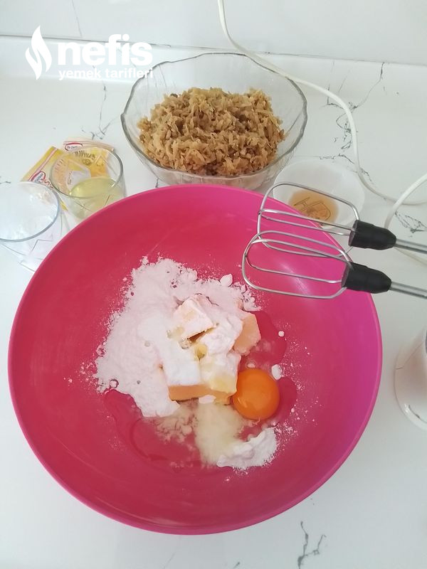 - Tereyağı ,pudra şekeri ve yumurtayı bir kapta mikser ile uygunca çırpın.