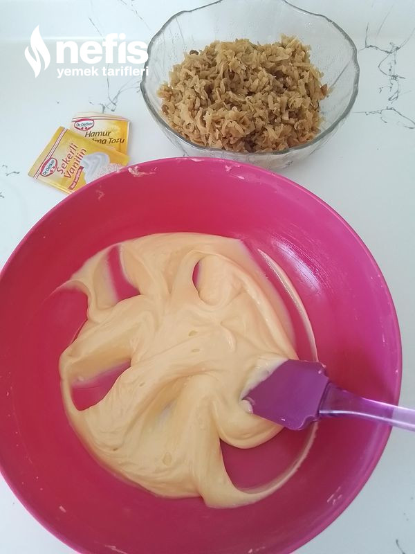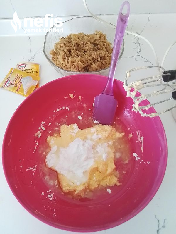 - İlk un eklemesini kabartma tozu ve vanilya ile birlikte yoğurun.