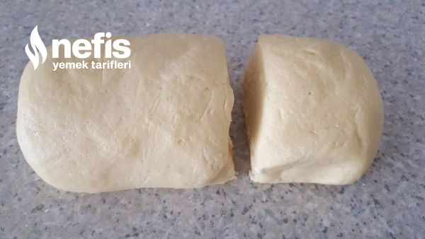 - Hamur materyalleri ile kulak göğsü yumuşaklığında bir hamur yoğuruyoruz. Unu denetimli bir halde ekliyoruz.