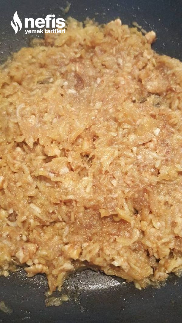 - Pişmeye yakın tarçın ve cevizli ekliyoruz. Biraz daha pişirdikten sonra soğumaya bırakıyoruz.
