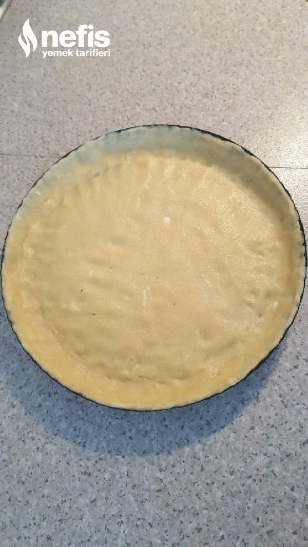 - Yağlanmış yada yağlı kağıt serdiğimiz tart kalıbına elimizle hertarafına kenarları da dahil gelecek formda yayıyoruz.