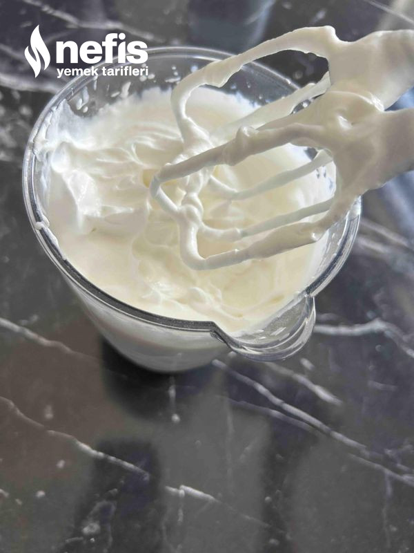 - Diğer yanda soğuk süt ve toz krem şantiyi yeterlice çırpıp kıvamlandıralım soğuması için buzdolabına kaldıralım .