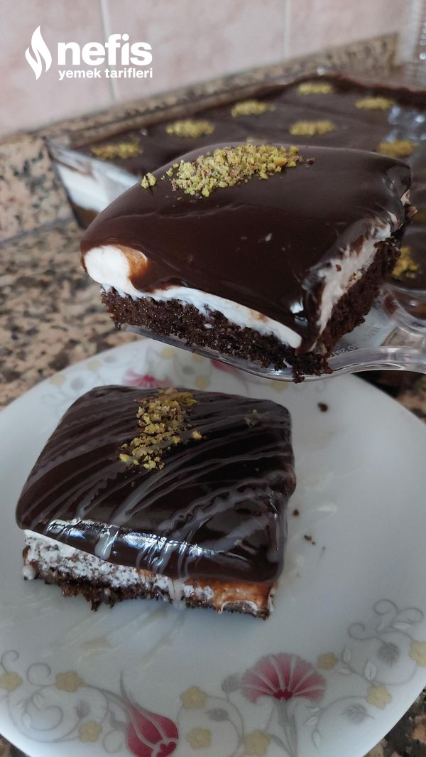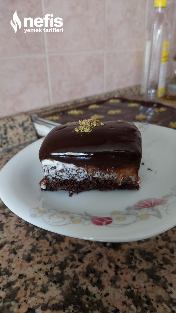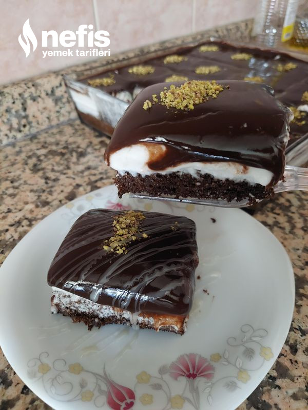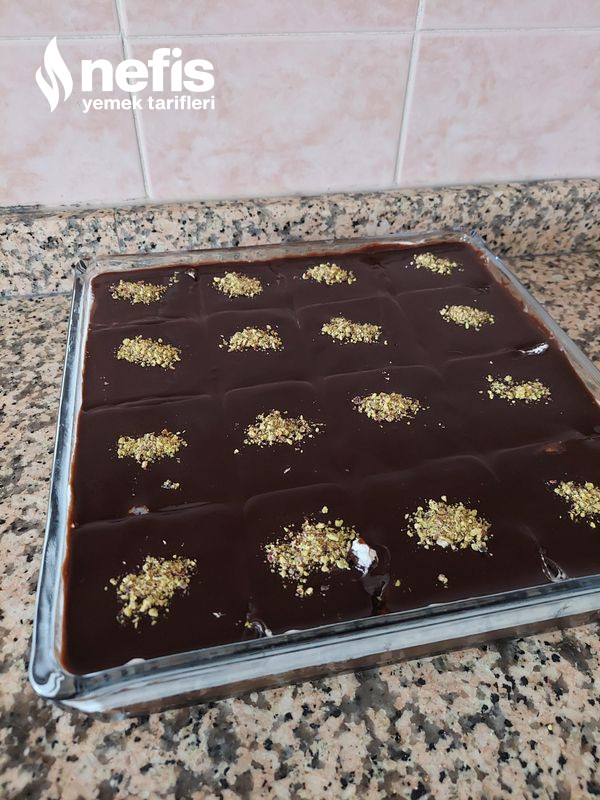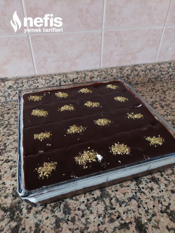 8. Çikolata sosunuda döktükten sonra tekrar buzdolabında dinlenmeye bırakalım. Afiyet olsun 🤗